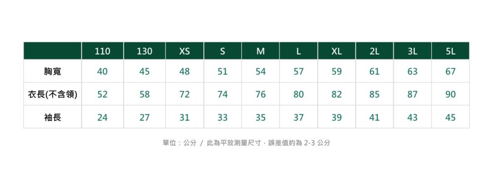 130, 110, XS, S, M, L, XL, 2L, 3L, 5L