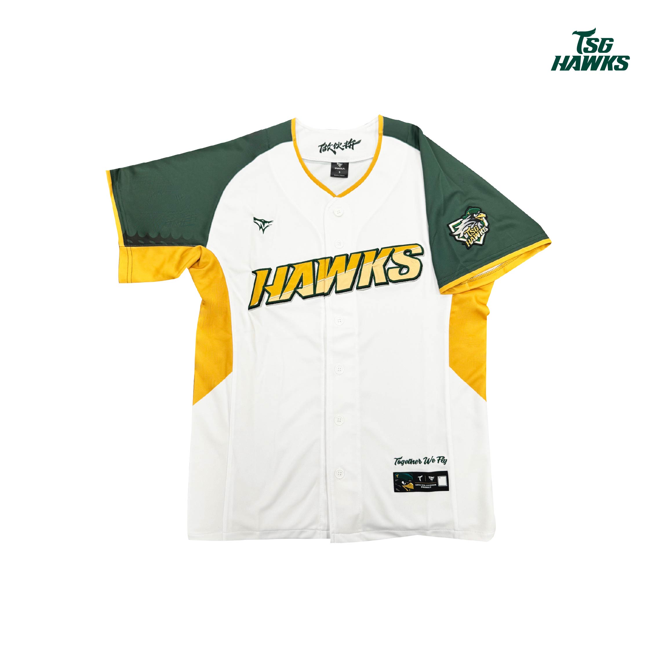 2026 經典主場球衣,綠白經典配色為球衣主軸,衣領與下擺標融入年度口號 「做伙拚」,象徵台鋼雄鷹團結一心、無懼挑戰的精神。