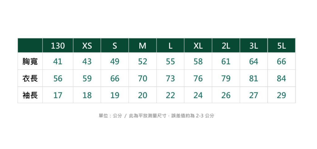 130, XS, S, M, L, XL, 2L, 3L, 5L